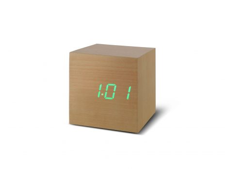 A Gingko cube click clock mutatja a pontos időt, dátumot, hőmérsékletet felváltva. Egy ideig, aztán ha minden elcsendesült már csak a kockát látod. A kijelző hangvezérelt, így csak csettints az ujjaddal, koppints a tetejére, vagy mellé és a ledek aktiválódnak. Természetesen folyamatos üzemmódban is használhatod, ebben az esetben 21.00 – 7.00 óra között a kijelző halványabb fényerőre vált, hogy ne zavarjon a pihenésben. Ébresztéskor a kijelző aktiválódik, három különböző ébresztési időpont közül választhatsz. Beállításaid megőrzésének érdekében a Gingko cube click clock integrált teleppel is rendelkezik.